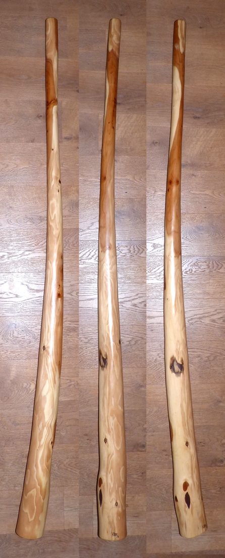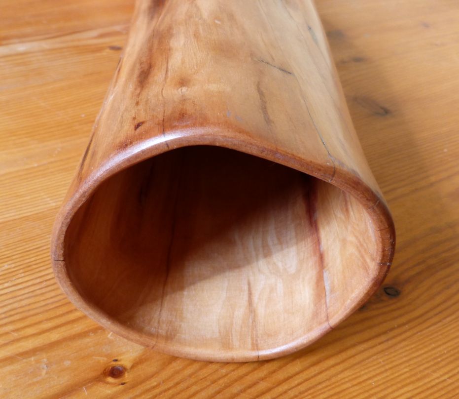 -Eigenbau aus heimischen Hölzern -Fundstücke aus Flüssen, Seen (Schwemmholz) und Wäldern -die Rohlinge sind 2-20 Jahre trocken eingelagert worden -dünne Wandung (5-10 mm) dadurch optimale Klangeigenschaften: gute Lautstärke, bassreich, klare Obertöne, leicht zu spielen daher gut geeignet fürAnfänger, klarer und satter Sound, sehr guter Gegendruck |
