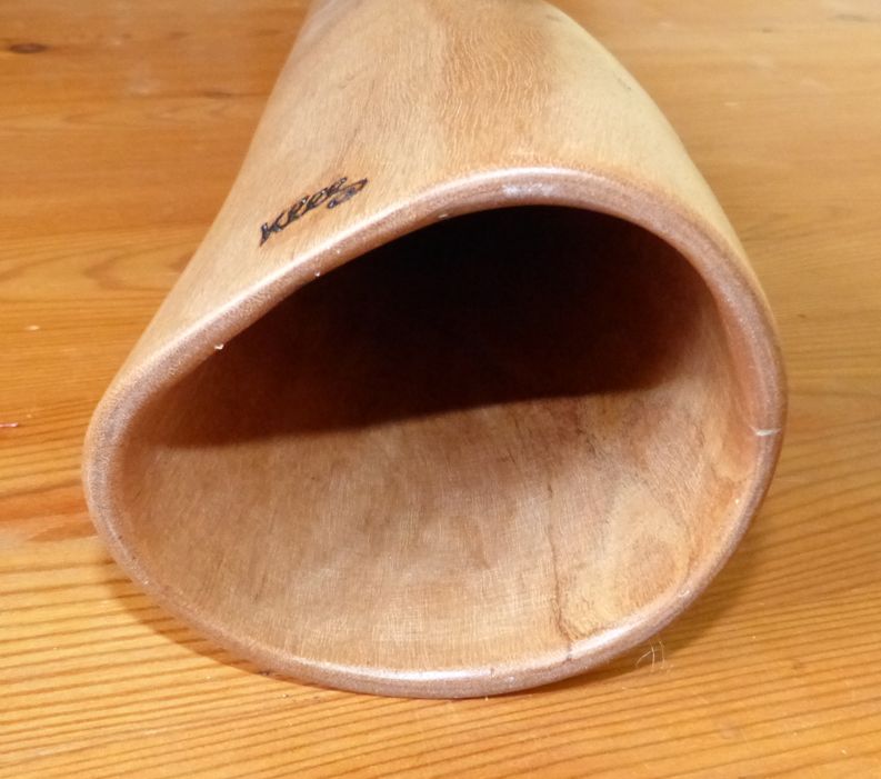 ![]() Walnuß aus München, Mundstück aus Olive Stimmung: E Länge: 162 cm Schalltrichter: 10,5 cm Preis: 650 €, verkauft |